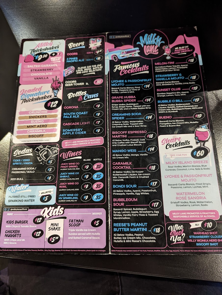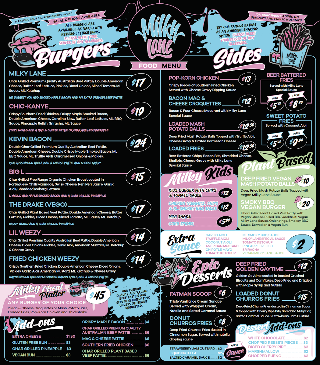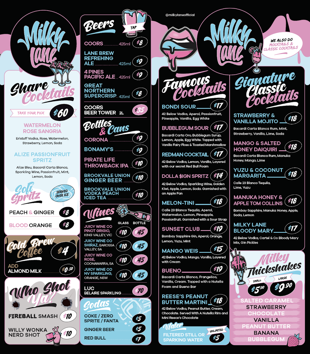 Welcome to Closed - Milky Lane Newcastle, located at 13 Darby St, Newcastle NSW 2300, Australia, where every bite is a treat and every sip is refreshing! Our menu is packed with mouthwatering specialties that are sure to satisfy your cravings. Start your meal off right with the fizzy delight of our Sprite PMX, or quench your thirst with our SODA Sparkling Water. For those looking for a little energy boost, a can of Red Bull is just what you need! With a selection that includes favorites like Fanta, Coke Zero, and classic Orange Juice, you’re bound to find the perfect pairing for your delicious meal. Don’t forget to try our unique offerings and let your taste buds experience the magic of Milky Lane Newcastle!